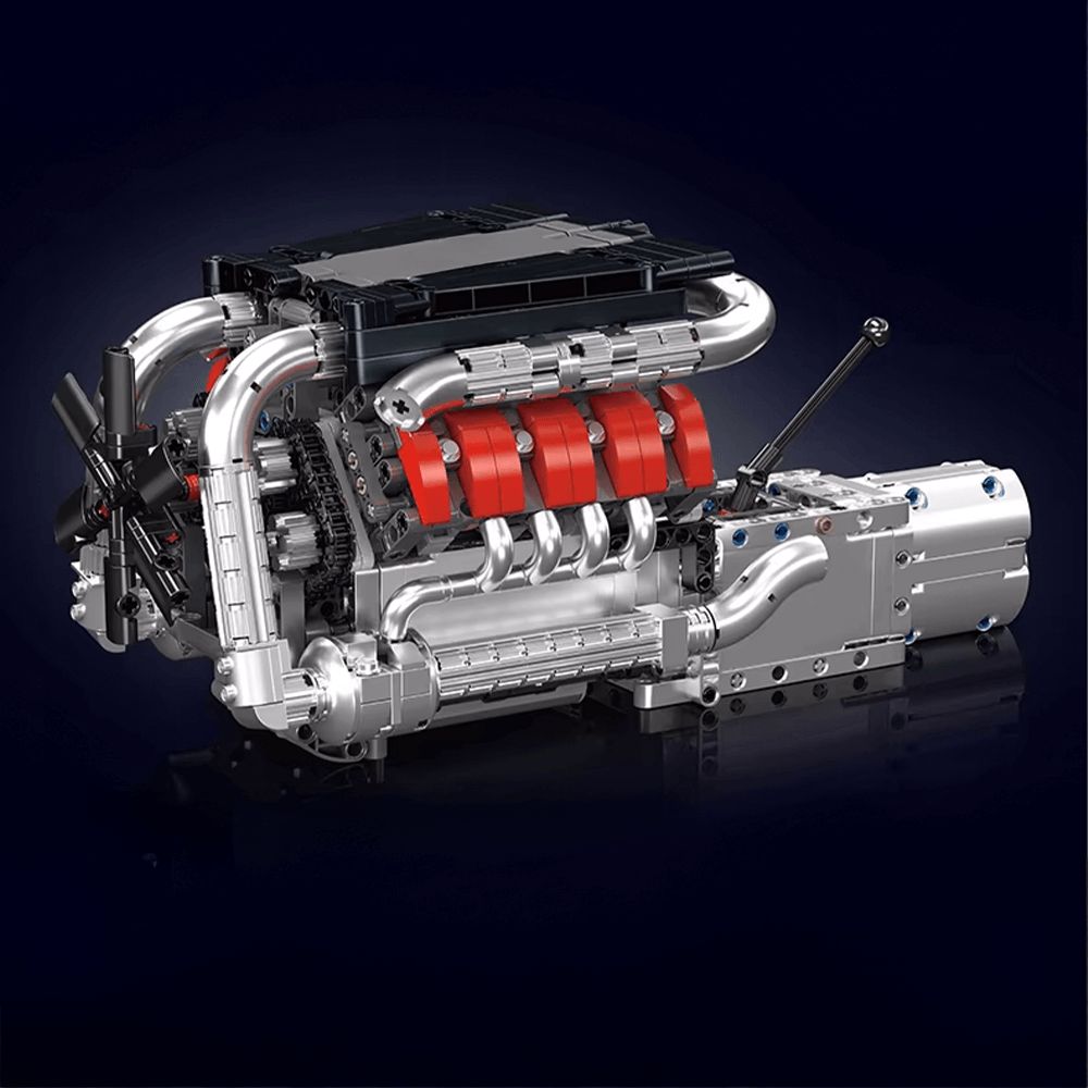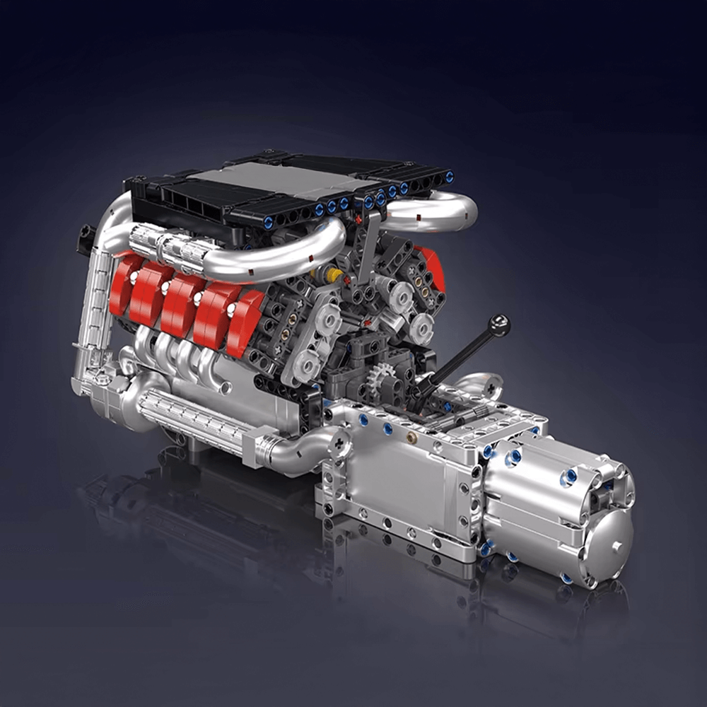 Experience the thrill of German engineering with this Motorised German V8 Engine and Gearbox. This intricate model, featuring over 1100 pieces and stretching 30+ cm long, brings the mechanics of a high-performance V8 to life.