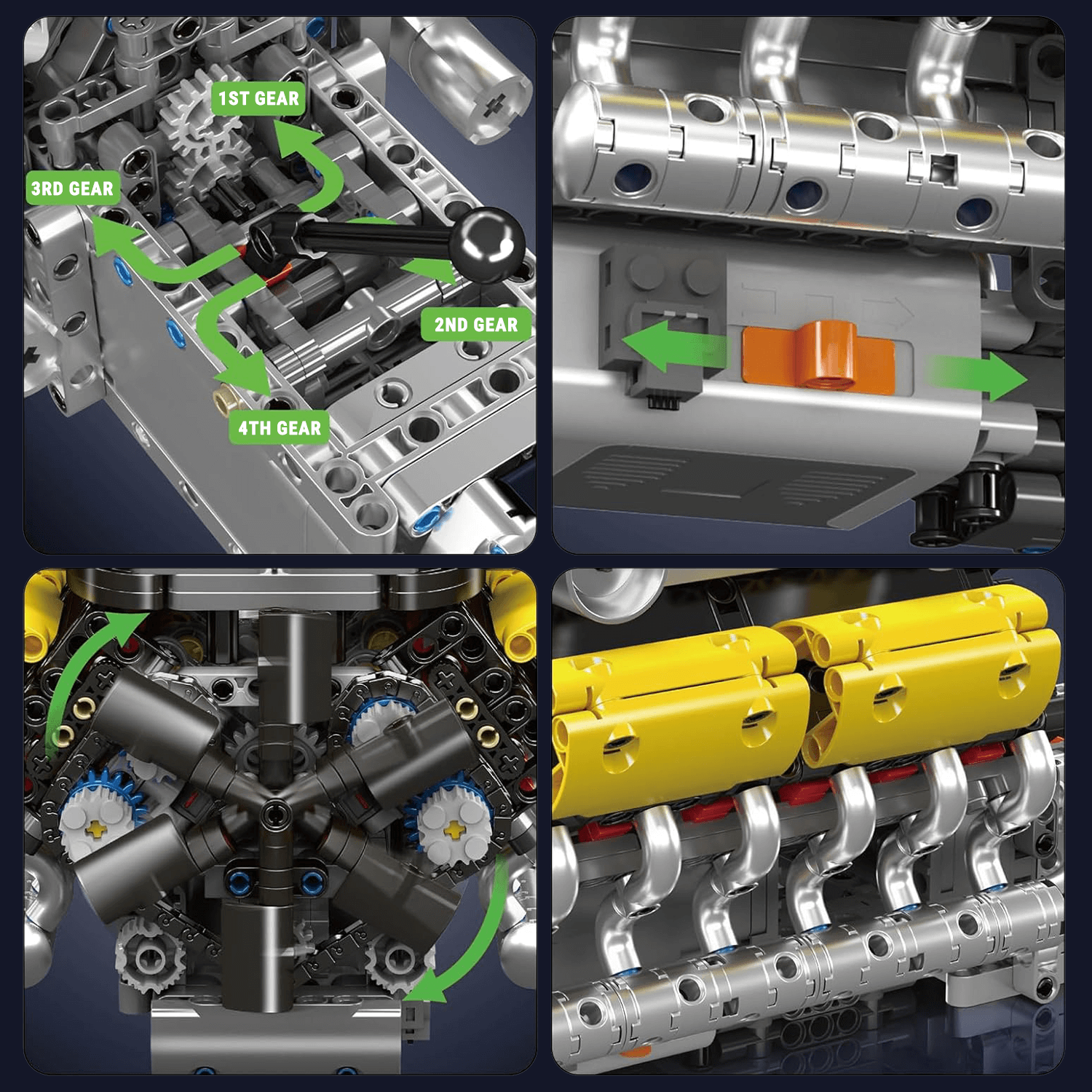 Powered by a large electric motor and battery box, every build step comes alive, letting you witness the engine’s dynamic operation in clockwise and anticlockwise rotation. Experience hands-on engineering, precision mechanics, and automotive artistry in one immersive model.