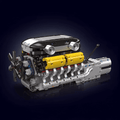 Assemble 12 smoothly rotating pistons and a manually operable 4-speed gearbox, while exploring detailed mechanics like the camshaft, valvetrain, and timing chains in motion. Chrome accents on the exhaust manifold and other key components enhance visual appeal, reflecting the luxurious finish of high-end Italian sports cars.