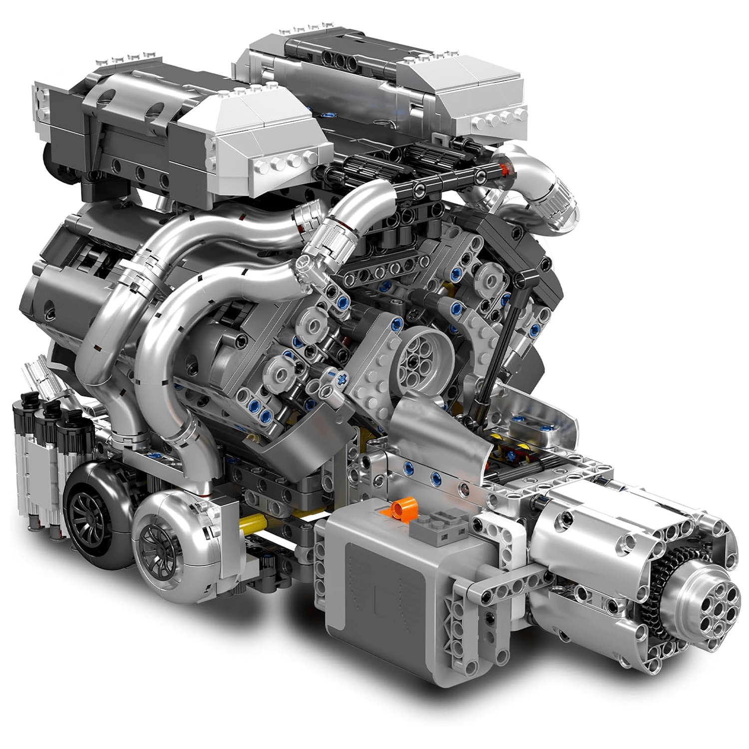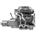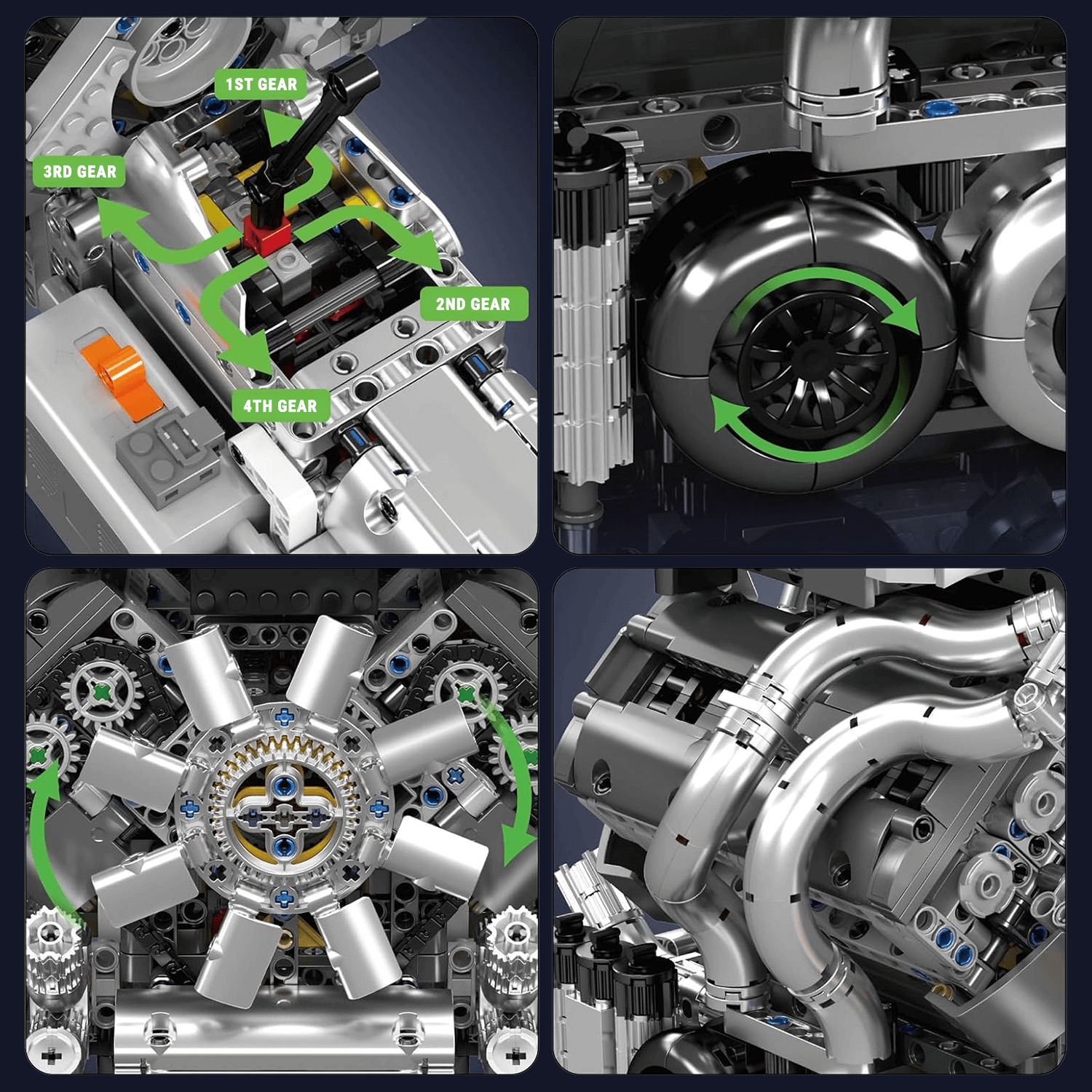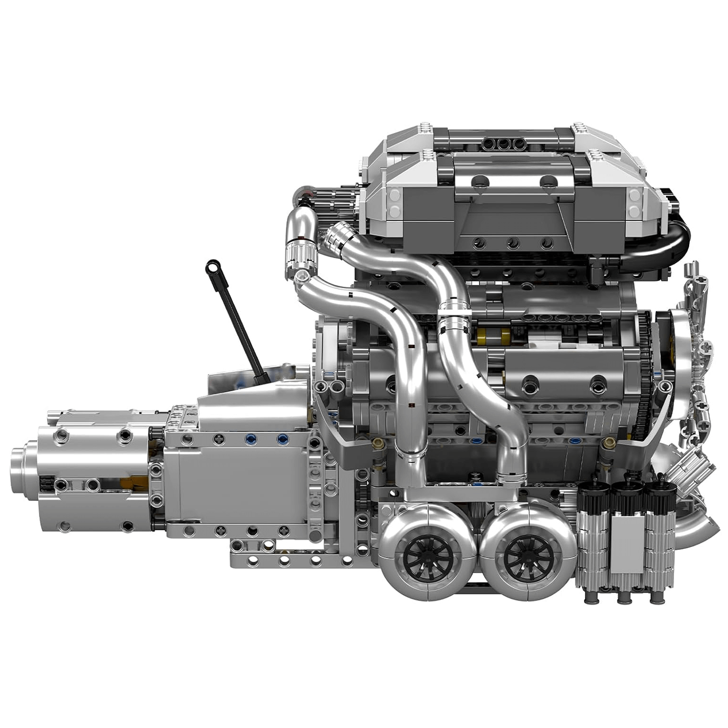 Construct every component with precision: the 16 rotating pistons, four turbochargers, rotating turbine wheels, and a fully functioning 4-speed gearbox. Chrome accents on the intake and exhaust manifolds add striking realism, while the camshaft, crankshaft, and timing chain showcase authentic engine mechanics.