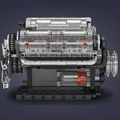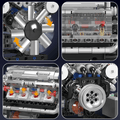 Featuring a transparent cylinder head, builders can watch the pistons rotate in perfect sync with the crankshaft. Additional components like the crankshaft pulley, timing chain, camshaft, and radiator fan enhance realism, providing a detailed insight into engine mechanics. The two cylinder banks, precisely angled at 90°, highlight the authentic V8 layout, giving a comprehensive understanding of iconic engine architecture.
