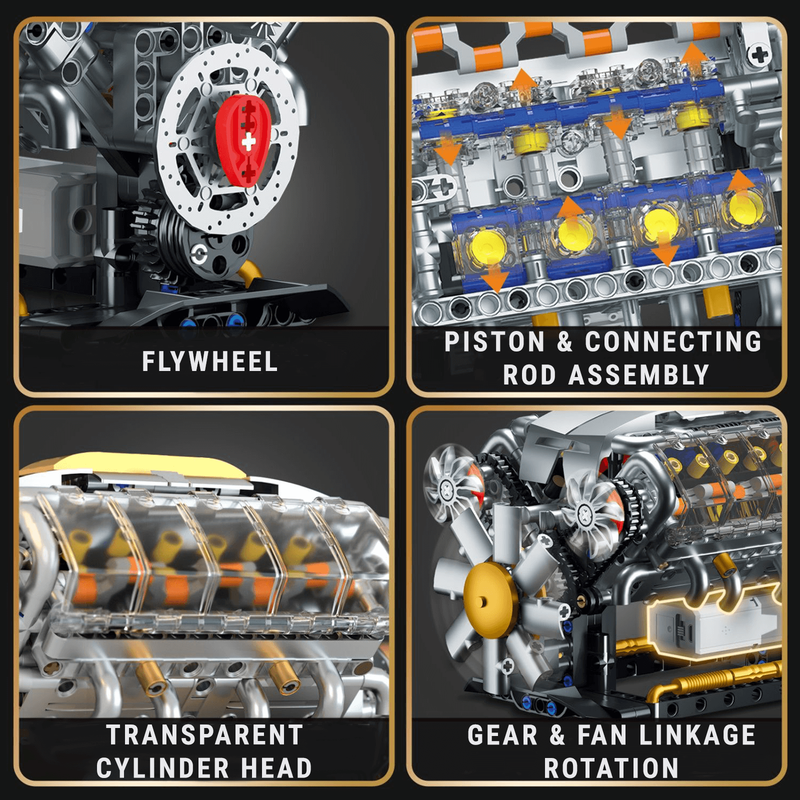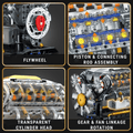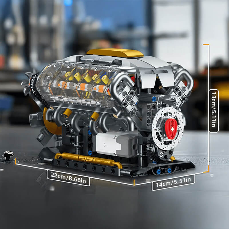 Assemble key components such as the transparent cylinder head, rotating pistons, camshaft, crankshaft, and timing chain—all powered by a rechargeable electric motor. This hands-on model lets you explore the inner workings of a naturally aspirated V8 engine, offering both education and satisfaction.