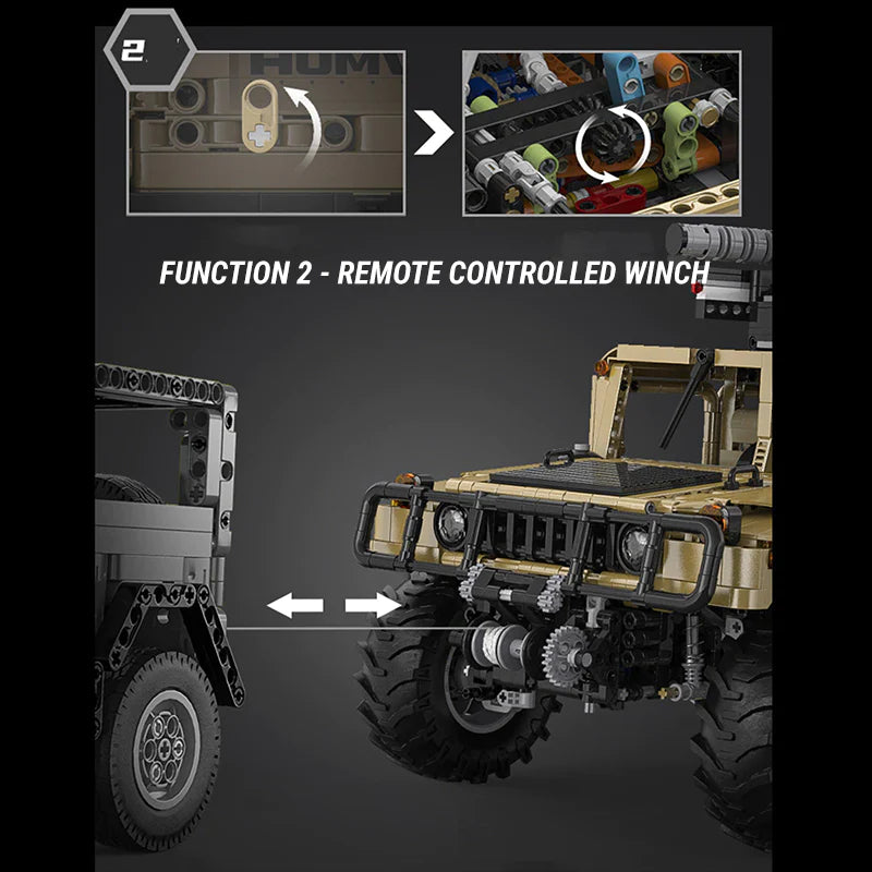 Take your off-roading adventures to the next level with the Army Hammer Off Road Car, a 1:8 scale, 3935-piece model that combines ultimate performance, heavy-duty detailing, and hands-on assembly fun. Built for enthusiasts, this model captures the thrill of a fully equipped Humvee with realistic remote-controlled functions.