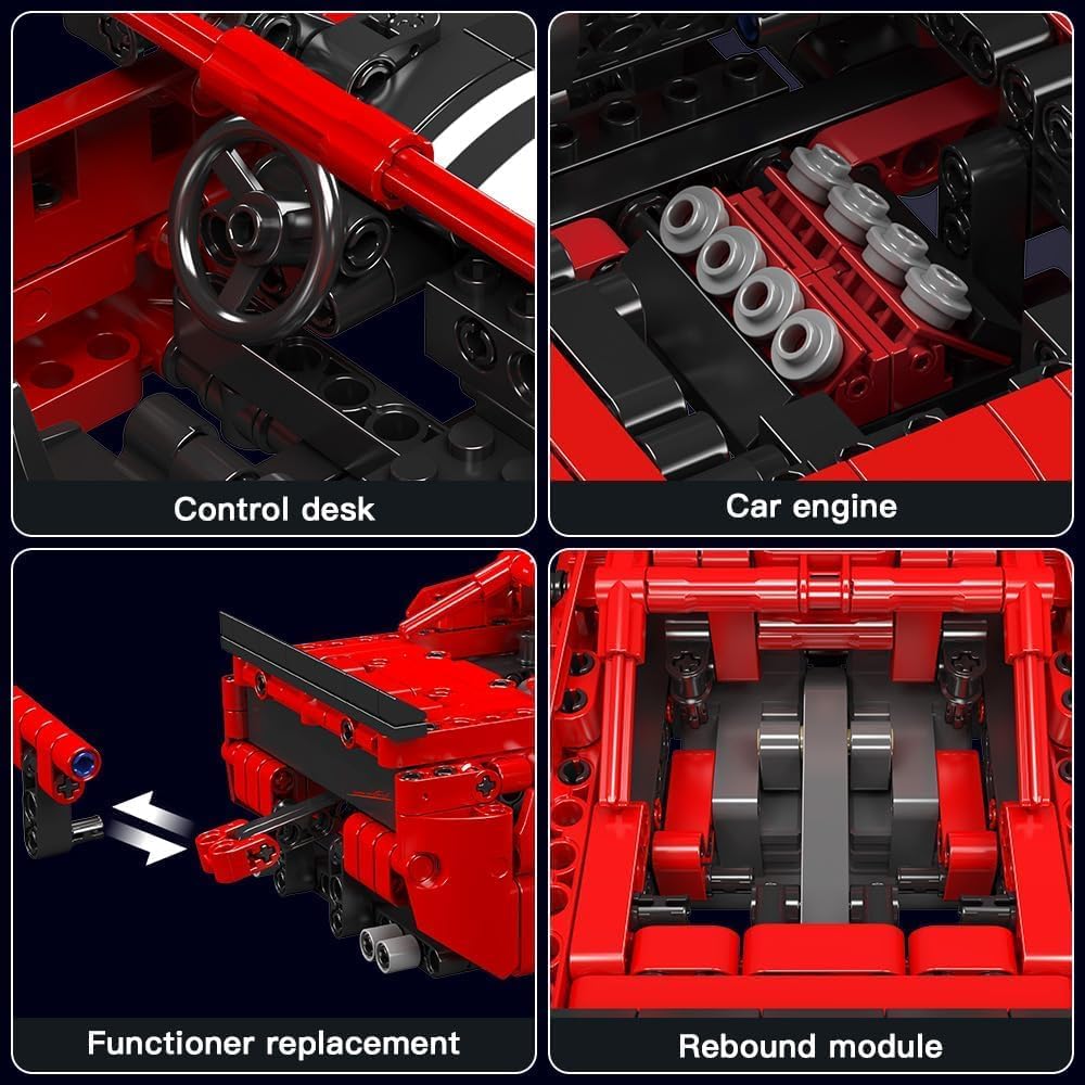 Feel the roar of American muscle with the Challenger, a 738-piece 1:16 scale model that perfectly captures the aggressive stance and iconic style of this street legend. Built for both display and play, this bold red edition features a functional pull-back motor, custom race wheels, and a striking black hood, delivering both action and aesthetic appeal. With precise proportions and detailed design, it’s a must-build for fans of classic muscle cars and high-performance models.