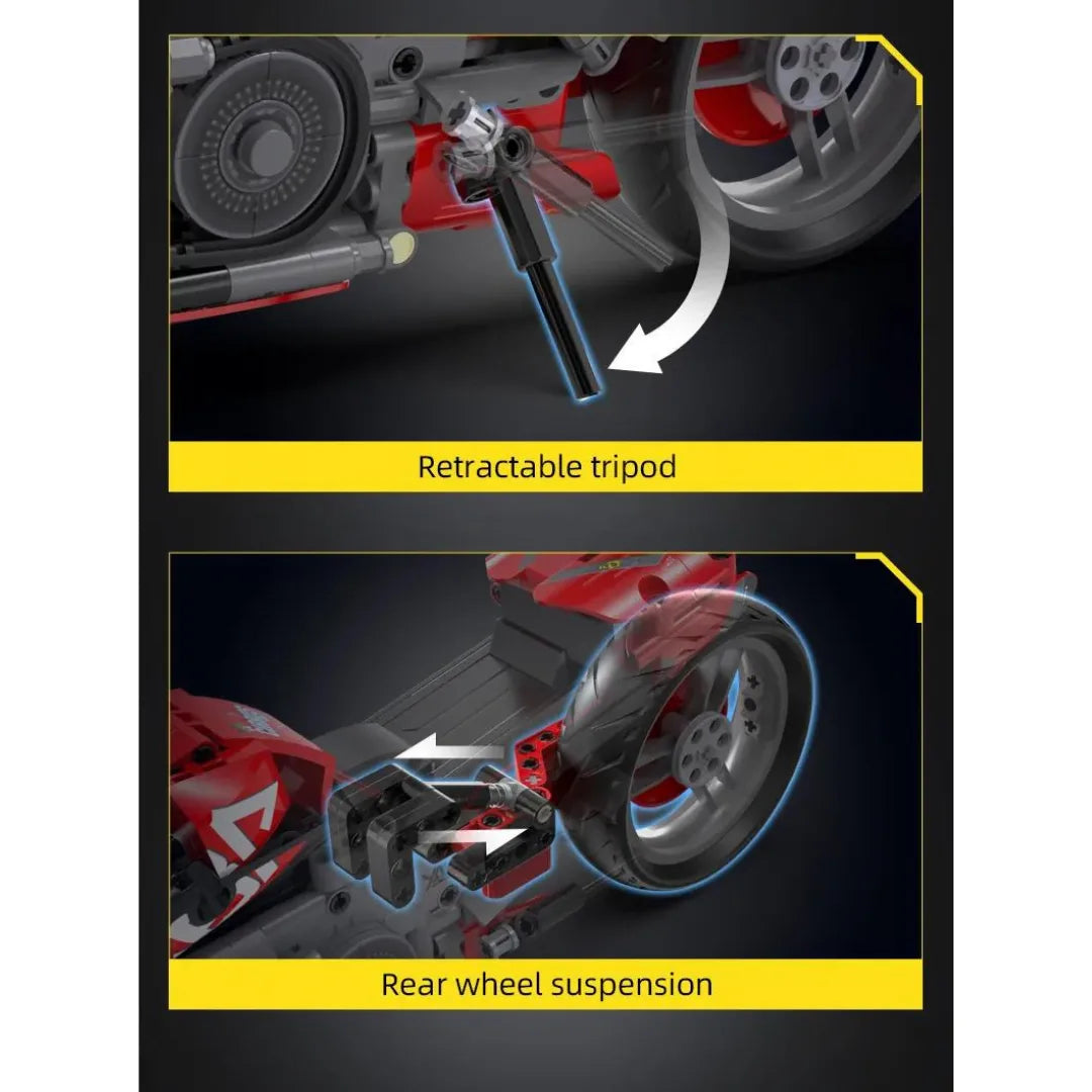 The finished model looks really impressive, but some connections are loose, and the kickstand is a bit too long to hold it properly. The instructions were hard to follow in places. Overall, still a fun and rewarding GoBuildit build.