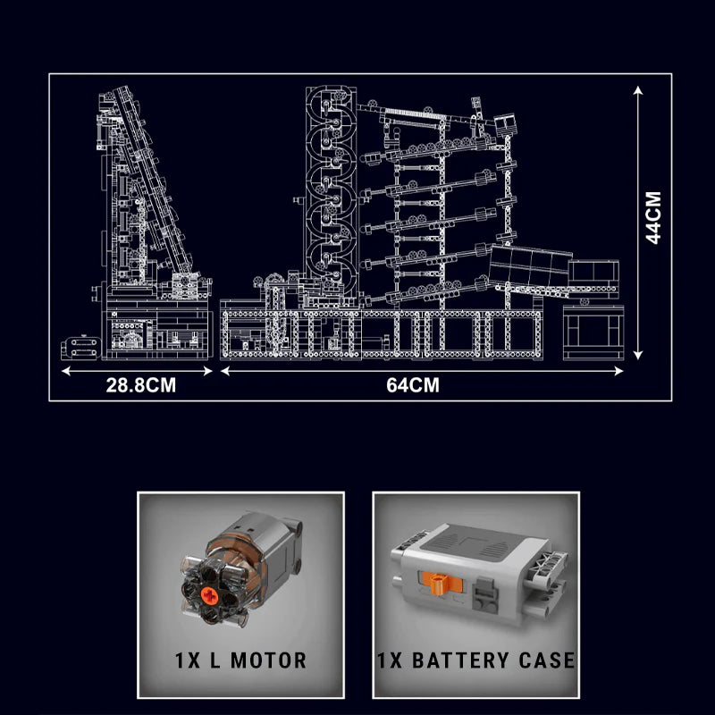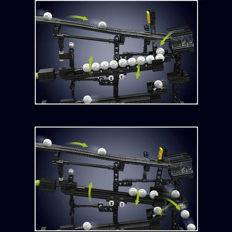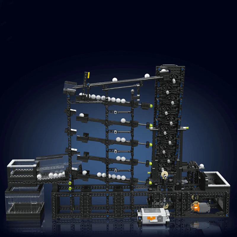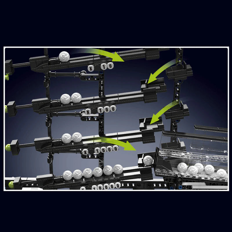 Presenting one of the most dynamic GBC (Great Ball Contraption) systems ever released! Powered by a precision motorized drivetrain, this Electric Ball Calculator features a stunning 6-stage staircase mechanism, perfectly synchronized to transfer each ball seamlessly from one level to the next.