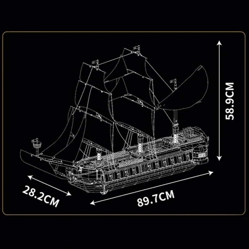 Every detail — from the anchor and bowsprit to the helm and 12 intricately crafted sails — is designed to deliver an authentic building experience and a stunning final masterpiece. Whether displayed as a centerpiece or proudly showcased in your collection, this ship captures the spirit of adventure and craftsmanship.