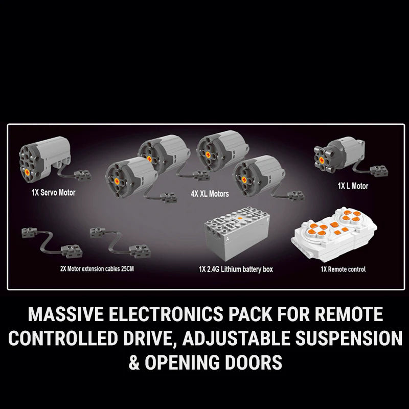 Custom-designed body panels, chrome wheels, and tires exclusive to this model make it a truly one-of-a-kind creation. For the ultimate experience, upgrade to the Remote Controlled version to command every feature — from the steering to the ride height — electronically.