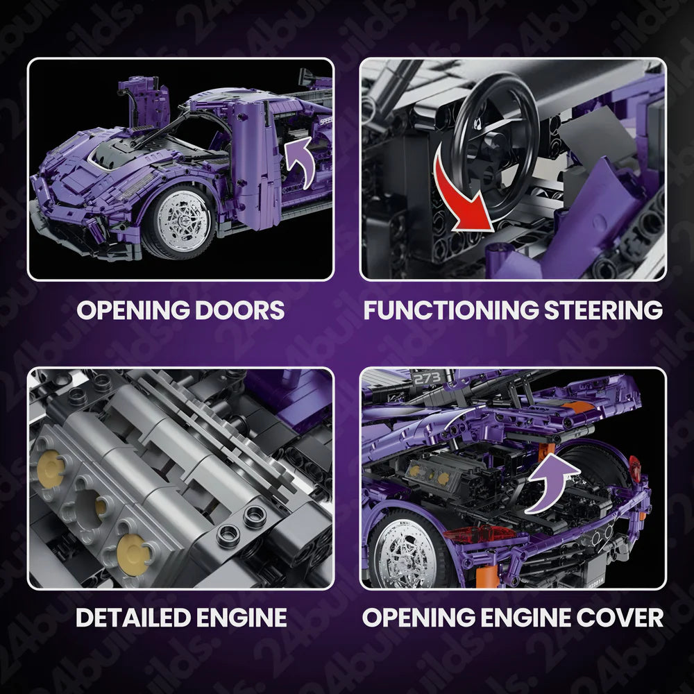 Unleash the power of Scandinavian engineering with the GoBuildIt™ Purple Swedish Hypercar, a masterpiece of precision design and mechanical performance.